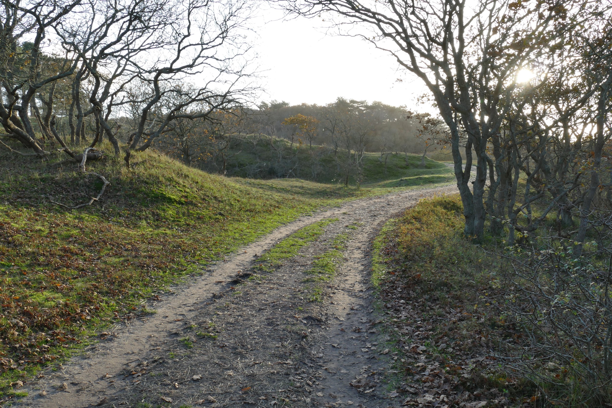 We laten de auto achter op de parkeerplaats en steken de weg over. Vandaag gaan we een rondje Verbrande Pan doen. Het is eigenlijk heel simpel: volg het hoofdpad, negeer alle zijpaden. Totdat je het fietspad van Gasterij ’t Woud naar Bergen aan Zee bereikt. Hier ga je rechtsaf en een paar honderd meter verderop ga je weer rechtsaf. Volg weer het hoofdpad, negeer alle zijpaden totdat je bij een beeldje komt. Buig hier mee naar rechts en ten slotte kom je weer bij de grote weg. Die steek je over en aan de andere kant ervan staat je auto. Of je fiets.