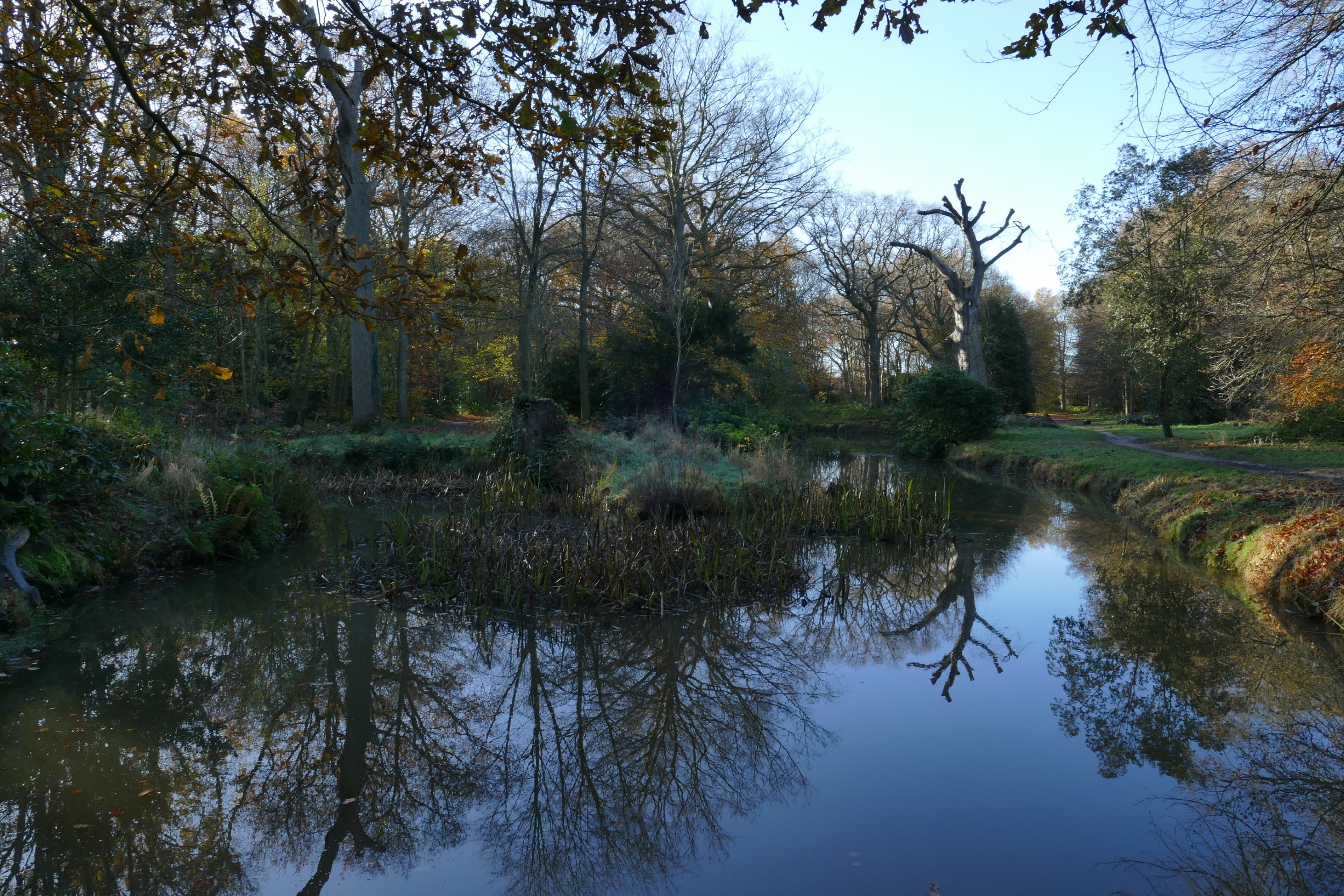 We bezochten twee buitenplaatsen die in Zuid-Kennemerland liggen: Beeckestijn (Velsen-Zuid, Natuurmonumenten) en Elswout (Overveen, Staatsbosbeheer). Op Beeckestijn vind je, naast een groot, natuurlijk aandoend Engels landschapspark, een geometrisch aangelegd park. Beide blinken uit in pracht en (herfst)praal… Op Elswout vind je nog de kenmerken van een Hollandsche baroktuin, maar het is toch vooral een landschapspark… In deze weblog laat ik enkele foto’s zien met waterspiegelingen… Een héél kleine greep uit de meer dan 250 foto’s die ik vandaag schoot! Deze ‘kleine collectie’ geeft al een aardige impressie van wat je te zien krijgt op deze Noord-Hollandse buitenplaatsen…
