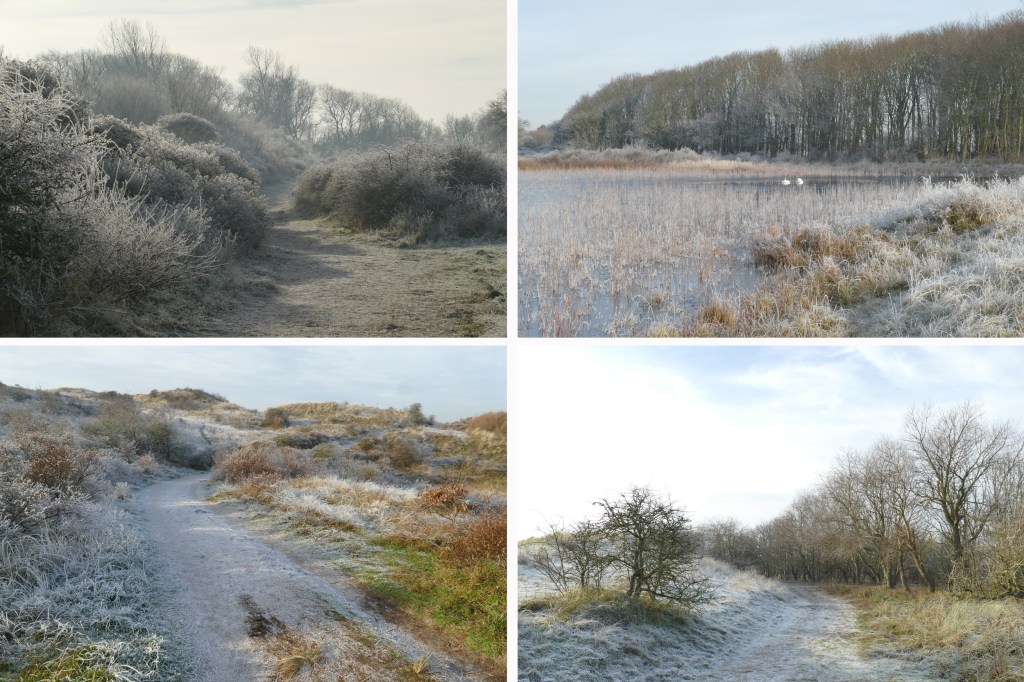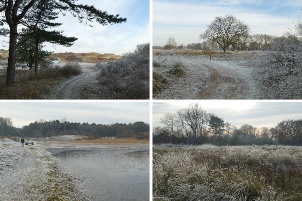 Eerder deze week hadden we een paar koude nachten en werden we wakker in een betoverend mooie, witte wereld… Woensdagochtend maakten we een korte wandeling door de duinen bij Egmond Binnen. Daar ligt toch een van onze favoriete stukjes Noord-Hollands Duinreservaat. Reservaat: wat een lelijk woord, valt me opeens op. Maar ja, zo heet het duingebied tussen Wijk aan Zee en Bergen aan Zee officieel.