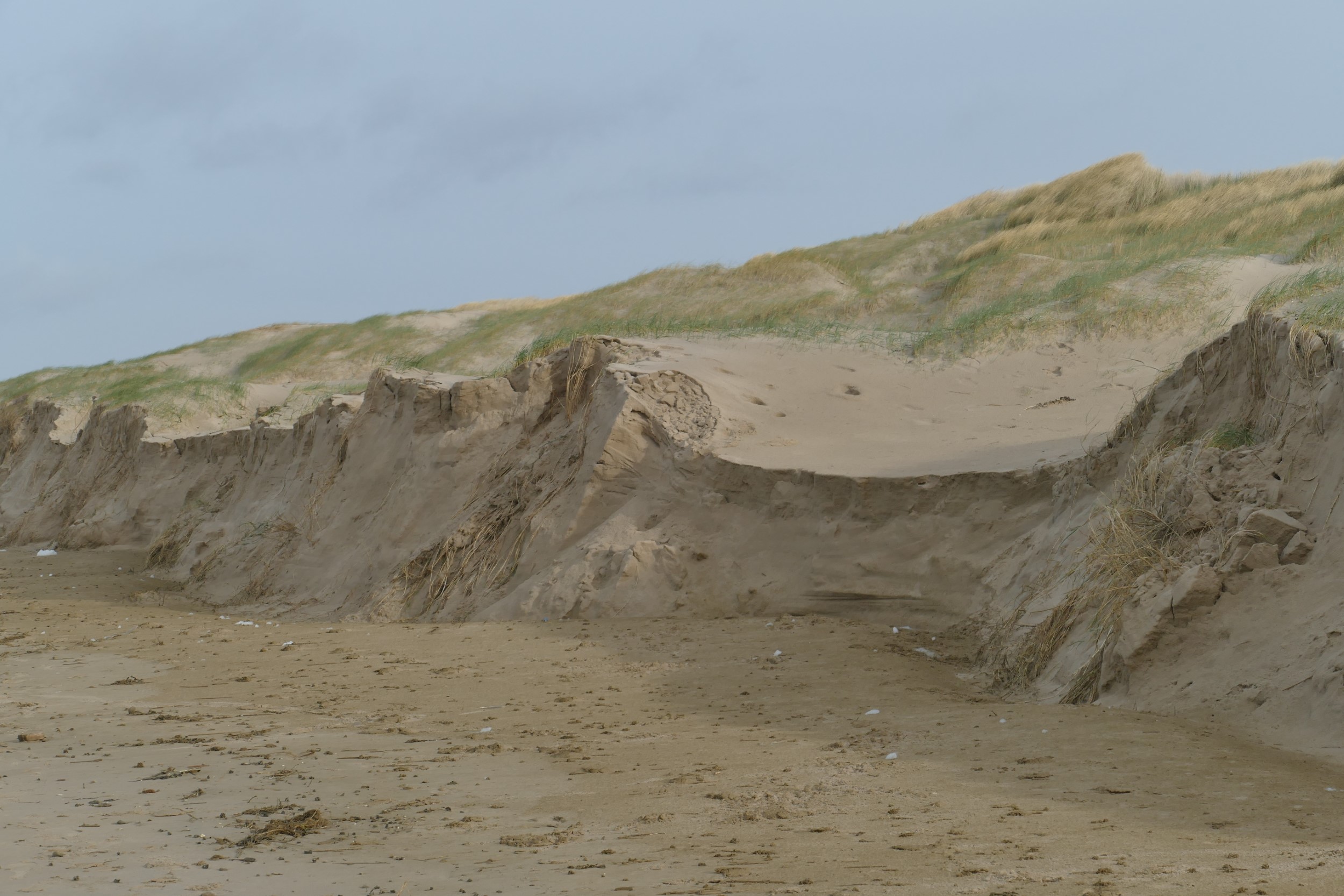 We klimmen naar de nok van de zeereep en dalen af naar het strand. De sporen van storm Corrie die afgelopen maandag woedde aan de Noord-Hollandse kust, zijn nog overal zichtbaar!