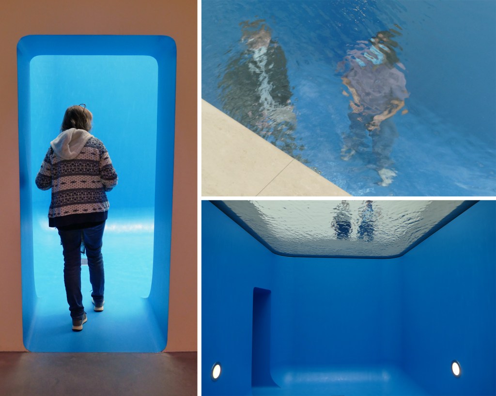 De volgende highlight was het kunstwerk Swimming Pool (2016) van de Argentijnse kunstenaar Leandro Erlich. Het idee is gewoon even simpel als geniaal: bouw een kelder en verf die blauw. Leg een glazen dak op de kelder en leg daar een laagje water op (10 cm of zo?). Bezoekers kunnen de kelder inlopen en zo van ‘onder water’ naar boven kijken. Wie boven staat en het water in tuurt, ziet daaronder mensen in het water lopen! De ervaring van daaronder te staan was grandioos!