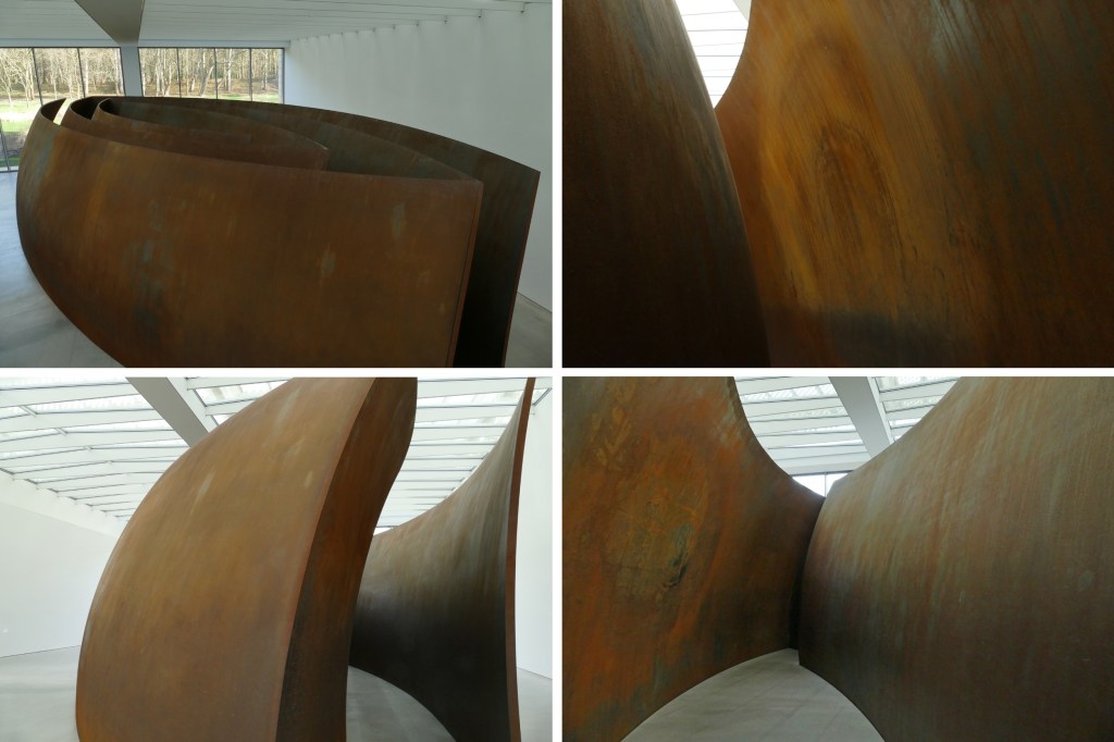 Weer een zaal verder stond een enorm stalen sculptuur: Open Ended (2007-2008) gemaakt door Richard Serra. Zes gewelfde platen vormen samen een doolhof. Het is echt een bijzondere ervaring om het doolhof in te gaan.