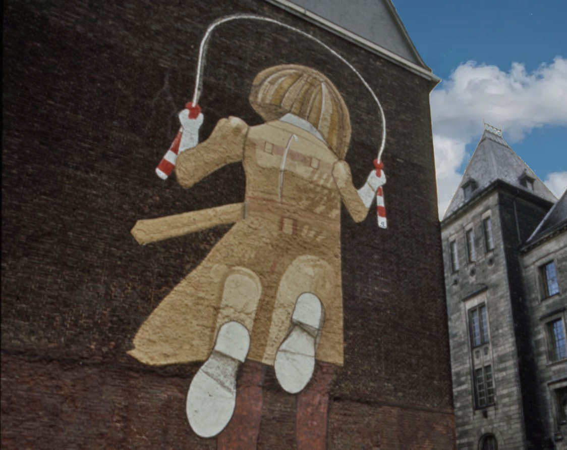 Het boek begint met de sloop van een 18 meter hoge muurschildering. Deze scène is aan de werkelijkheid ontleend. Schilder Co Westerik maakte het wandreliëf van het meisje in 1976 voor een politiebureau in Rotterdam. Het gebouw ging, mét het reliëf, in 1988 tegen de vlakte. Hoewel de muurschildering van begin af aan als tijdelijk was bedoeld, “om rotplekken in Rotterdam op te fleuren,” zoals Westerik in een interview zei, vond hij het toen het gesloopt werd “wel verdomd jammer”, maar was hij niet bereid om het elders opnieuw te maken, ook al schijnt hem dat gevraagd te zijn…