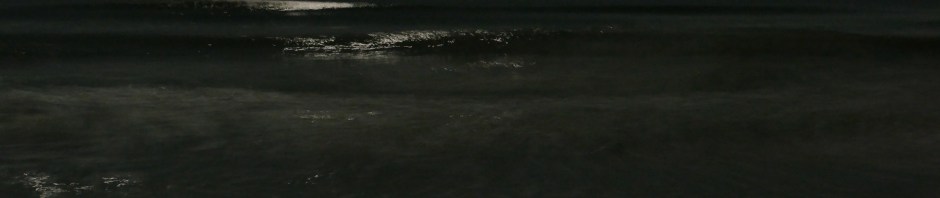 Ik ben niet de enige die met fototoestel en statief sjouwt… Overal langs de waterlijn zie je lichtjes: schermen van digitale camera’s. Zacht maanlicht verdunt de duisternis. In de verte, ver weg op zee, ligt een schip. Onze ogen zijn gewend aan het donker en we onderscheiden het strand, de duinen, de mensen die langs de zee kuieren, warm ingepakt want het vriest.