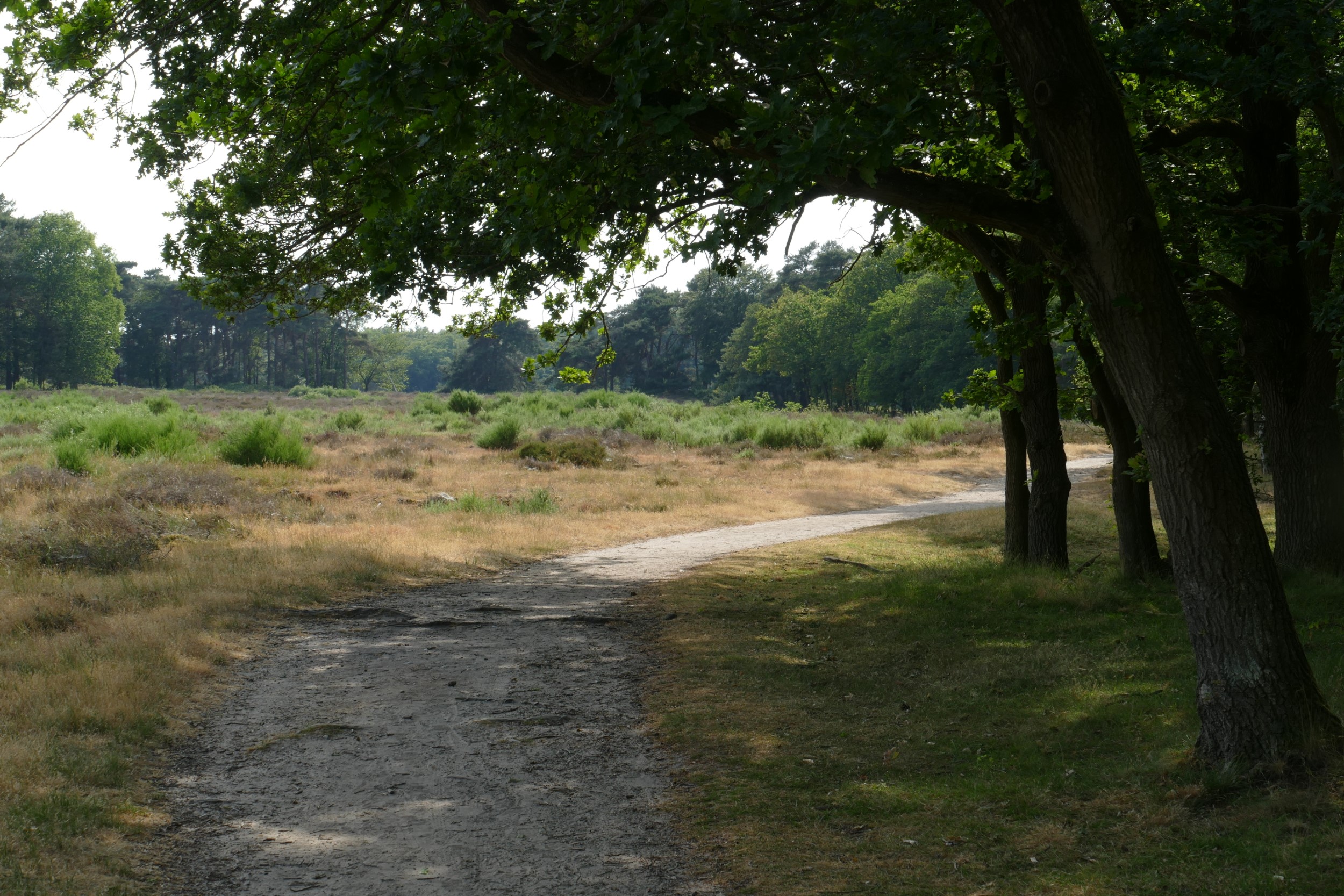 We parkeren op een beschaduwd plekje op de parkeerplaats. Restaurant: check! Klaphekje: check. Omheining: check! Schaapskooi: nou euh… het zal wel zeker!? We gaan op pad. Na een paar honderd meter hapert de routebeschrijving: er is sprake van een tweesprong, maar in realiteit hebben we hier echt wel keuze uit meer dan twee paden. Okay, we laten de ruiterpaden buiten beschouwing en nemen het pad dat naar een bosje loopt, zoals de routebeschrijving aangeeft. We volgen even later de bosrand (klopt) en moeten vervolgens door het bos en over een reep heide om de N527 over te steken. De beschrijving heeft het over paaltje nr. zoveel en paaltje nr. zoveel – er klopt weeral niks van…