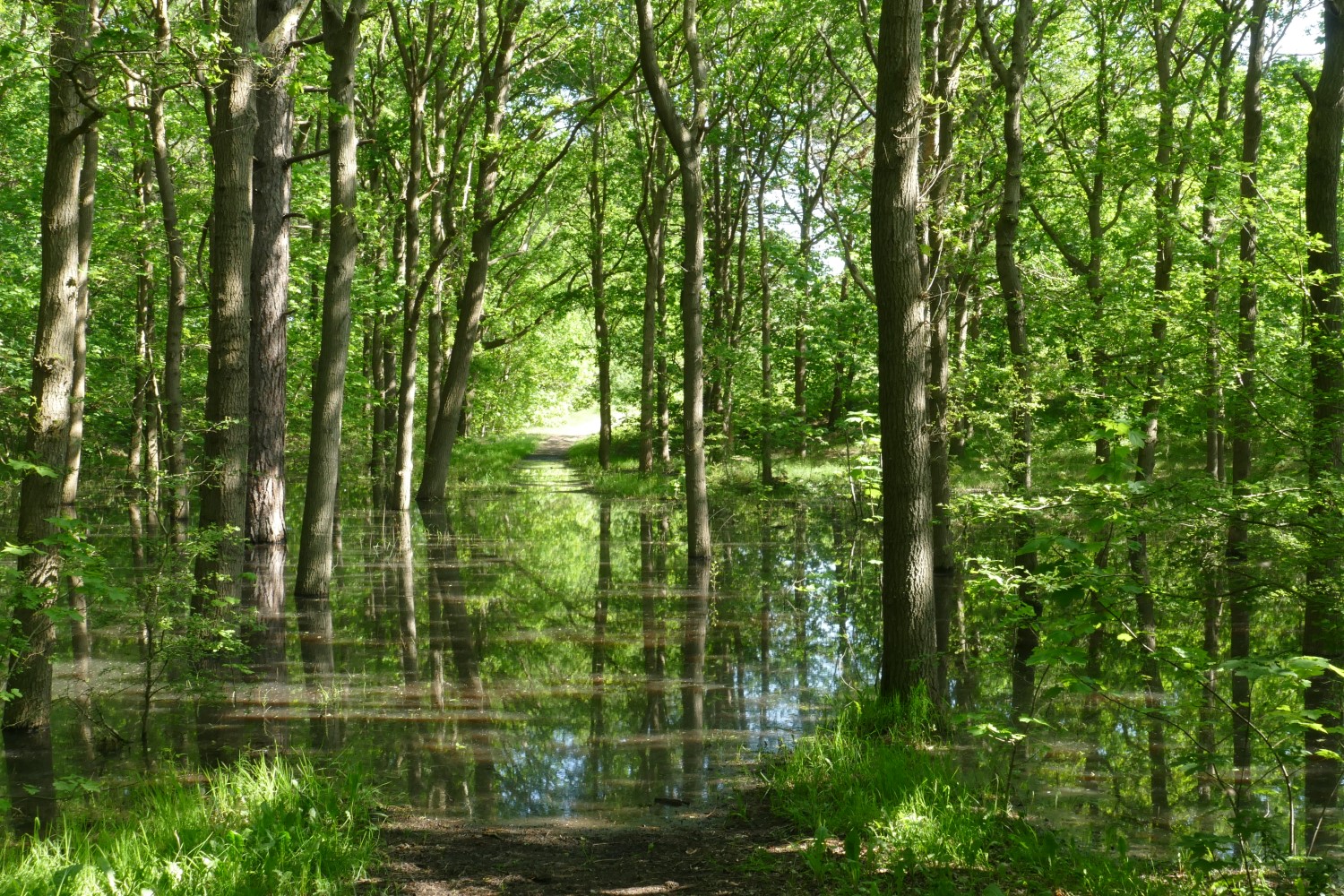 Dit rondje hebben we een paar weken geleden ook gelopen en we zijn benieuwd of het water inmiddels al is gezakt. En ja, dat is het. Maar dat betekent niet dat je nu weer overal normaal kunt wandelen… In feite is het water maar enkele centimeters gezakt, is mijn inschatting. Echt opschieten doet het dus niet en je moet dus nog steeds rekening houden met beperkingen…