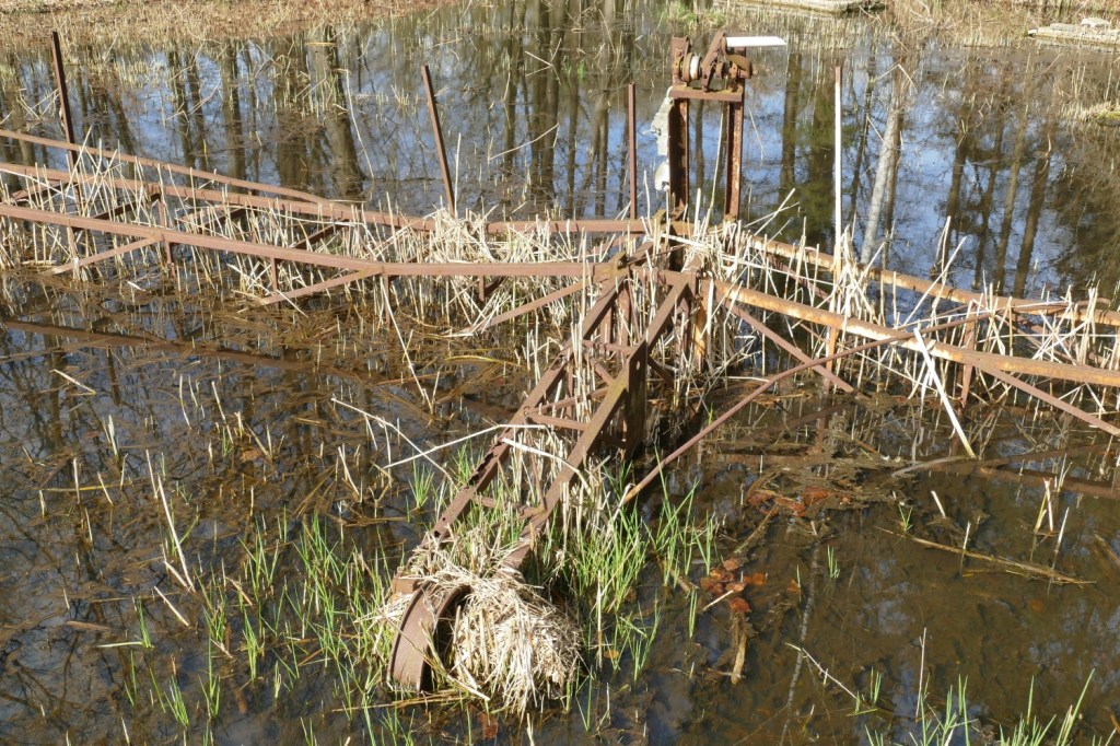 Eigenlijk is het heel gemakkelijk: blijf lopen met de ringsloot aan je rechterhand. Verdwalen kun je hier niet. Je wandelt bijna de hele tijd over particulier eigendom; de wandelaar is hier te gast. Fantastisch dat dit kan! Al gauw komen we de eerste omheiningen tegen waar je overheen moet d.m.v. houten overstapjes: en die worden niet goed onderhouden, kan ik je vertellen. Enkele zijn in de afgelopen tijd vervangen door plastic exemplaren, maar de meeste zijn nog ‘origineel’ en je moet je steeds goed vergewissen van de staat ervan. In totaal staan er op deze wandeling ruim 60 overstapjes!