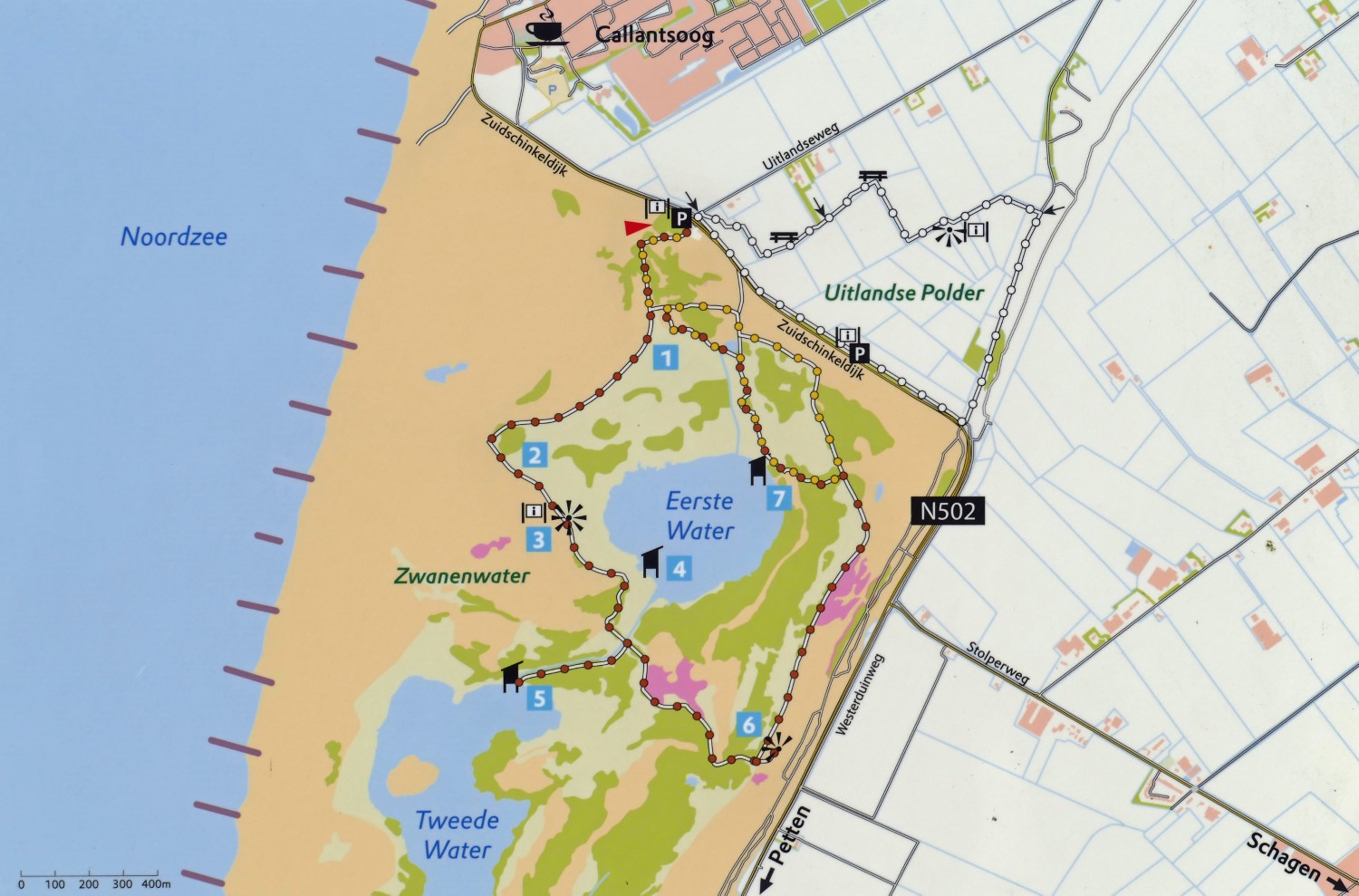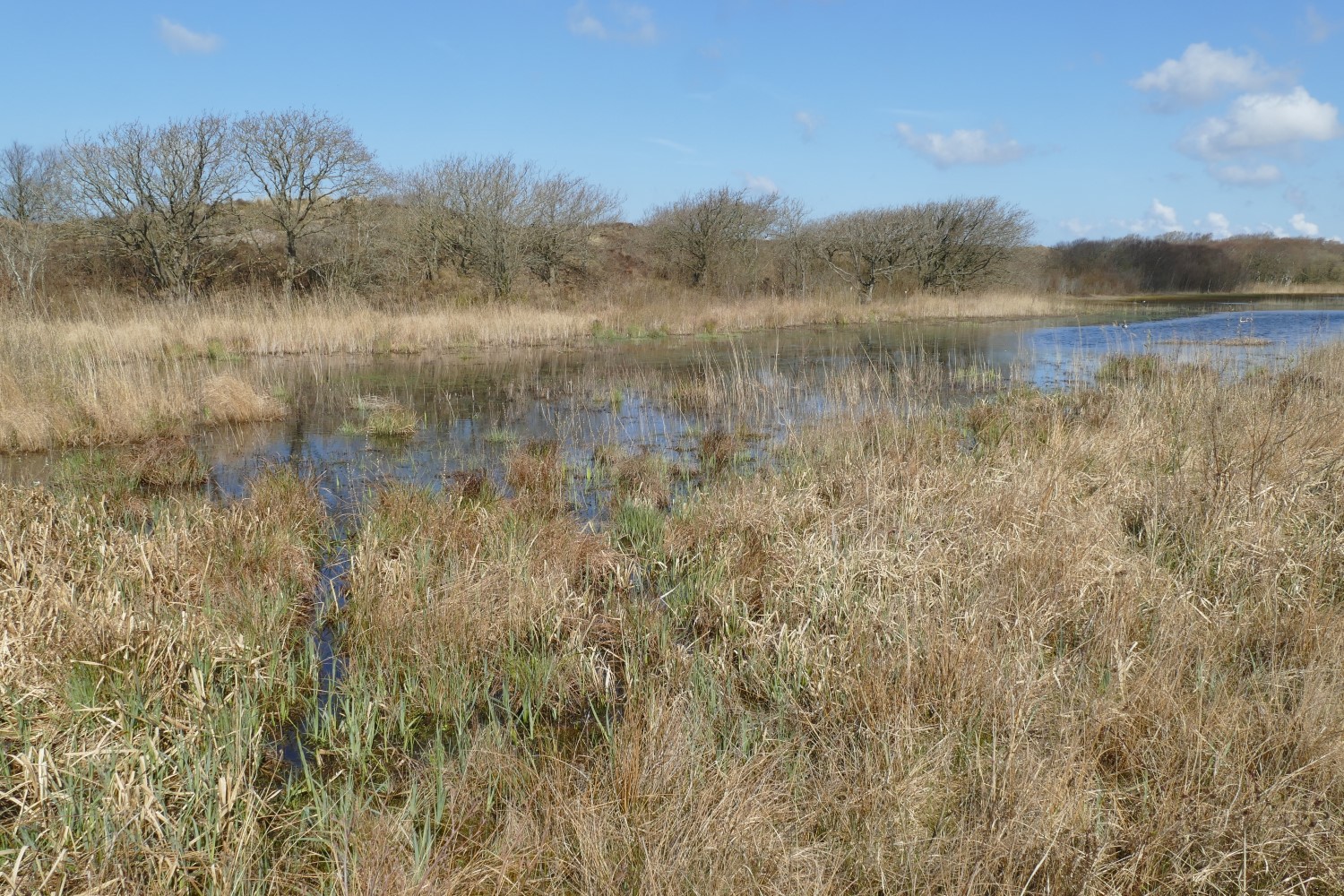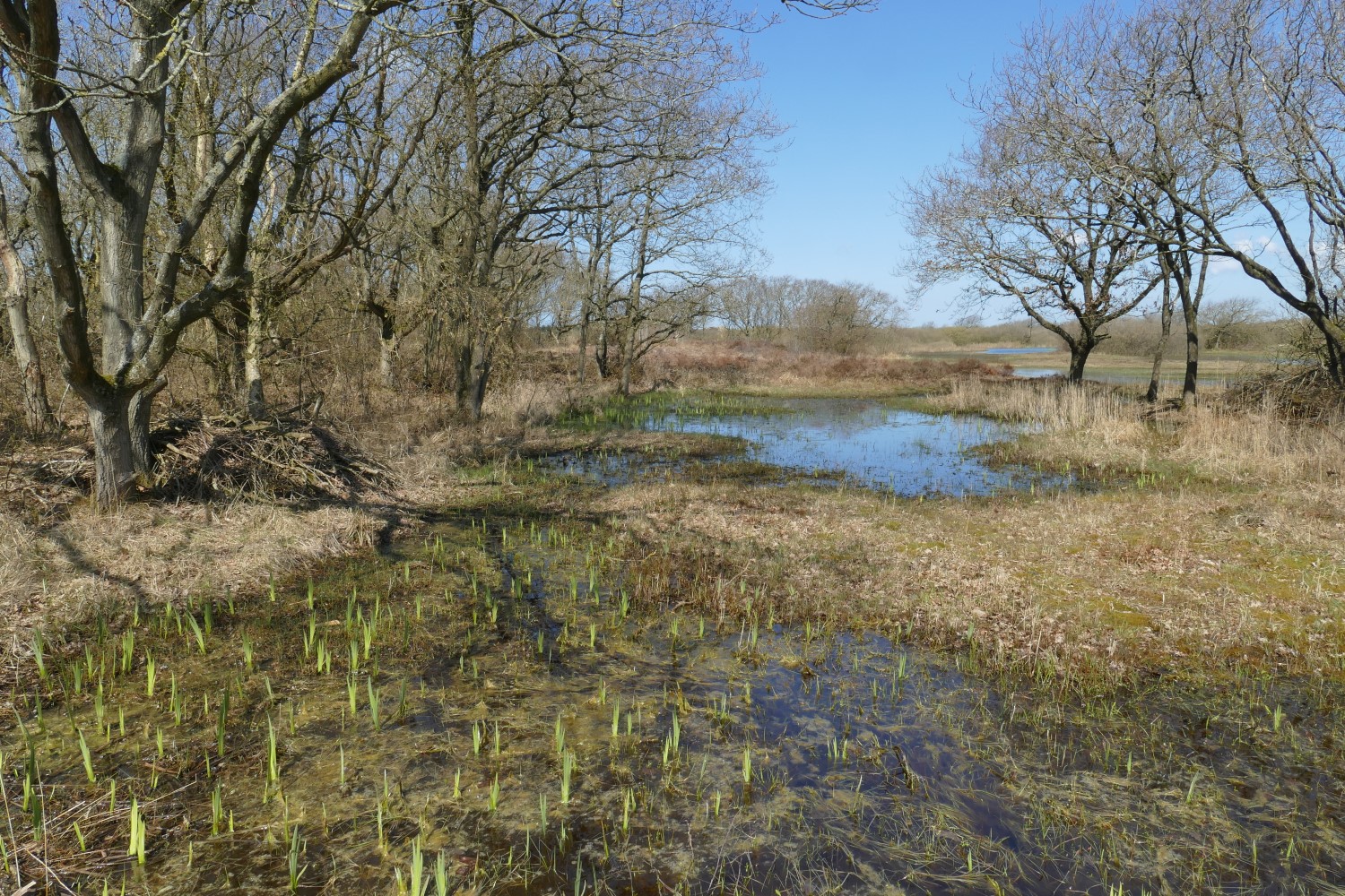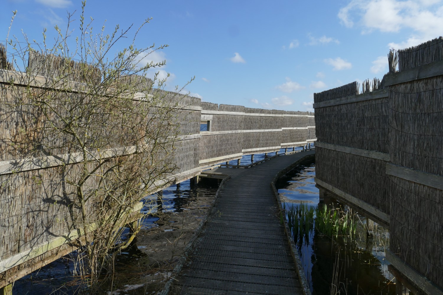 Op het water zien we eenden, ganzen en meerkoetjes, aan de kant staan reigers te vissen, we zien meeuwen, visdiefjes, scholeksters, grutto’s en kieviten vliegen, duiken en landen. Als we op een bankje zitten om even wat te eten en te drinken, rent er een haas langs.