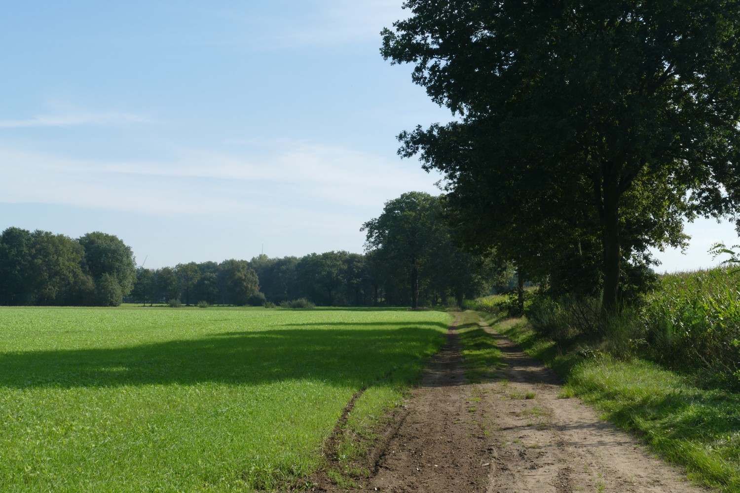 We wandelen afwisselend door akkerland, door bos en op de grens van beide. Het zonnetje schijnt uitbundig en de muggen prikken er lustig op los. Die korte broek was niet echt een goed idee, verdorie, maar gedane zaken nemen geen keer, zeker niet als de lange broek thuis is achtergebleven omdat Gerrit Hiemstra in zijn laatste weerbericht een warm, droog en zonovergoten weekend voorspelde.