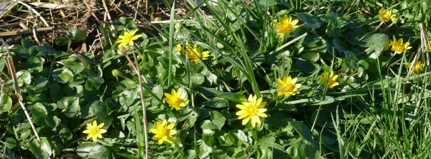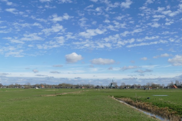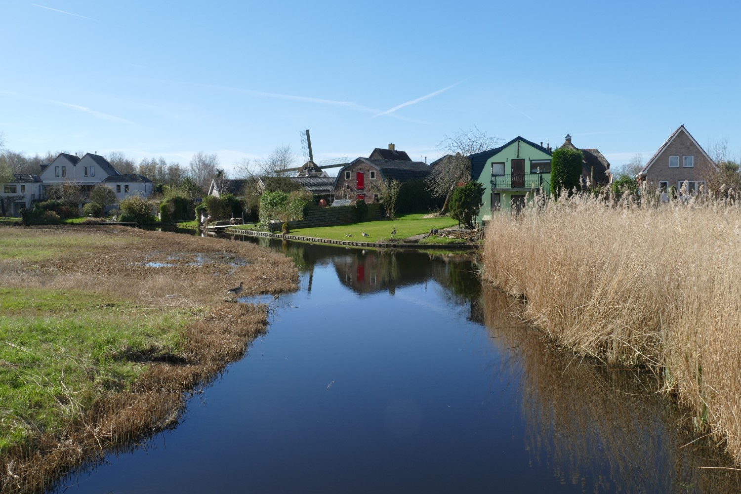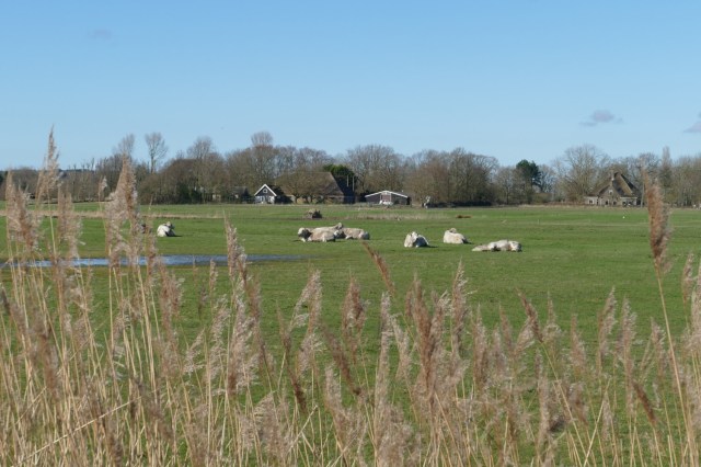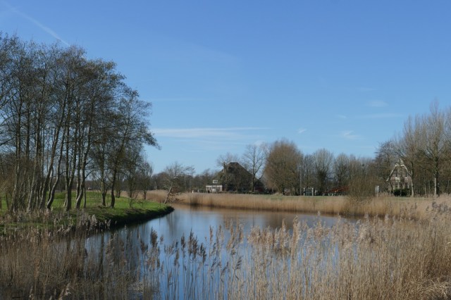 De weersverwachting was niet echt geweldig maar op deze vrije maandag tappen de weergoden opeens uit een lentevaatje! Na een grijze start verschijnt er allengs meer blauw aan het uitspansel en als wij kort na de middag de deur uitstappen, is de hemelkoepel staalblauw met landinwaarts wat dotjes schapenwol die langsdrijven… We lopen ons wijkje uit…