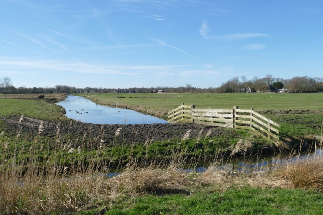 Halverwege de afgelopen week, nadat de fysiotherapeut me voor een tweede keer stevig onder handen had genomen, zette het herstel in. Pijnstillers heb ik nog maar af en toe nodig. En vanmorgen reden we naar het Geestmerambacht en ik liep een rondje van ongeveer 800 meter bij de Kleimeer.