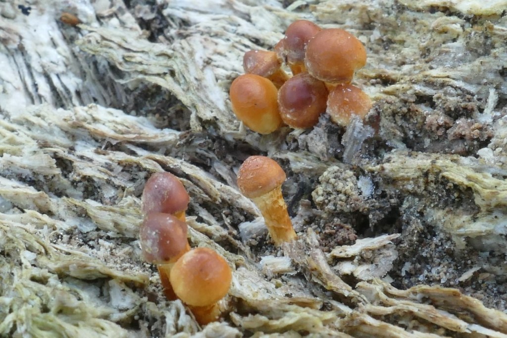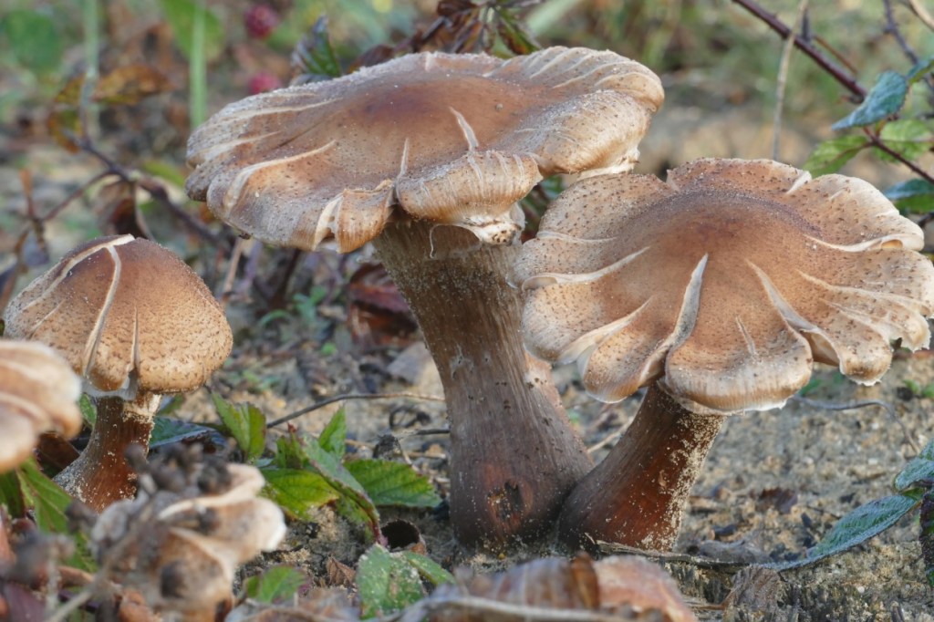 Enkele weken geleden maakten we ongeveer dezelfde wandeling en vonden veel paddenstoelen. Ik had toen net de app ObsIdentify geïnstalleerd op mijn telefoon en identificeerde de ene na de andere zwam, soms met 90% zekerheid, vaker met grote twijfel door de app van een naam voorzien… Eerlijk gezegd, we verwachten vandaag niet zo veel paddenstoelen meer te zien, maar dat valt reuze mee.