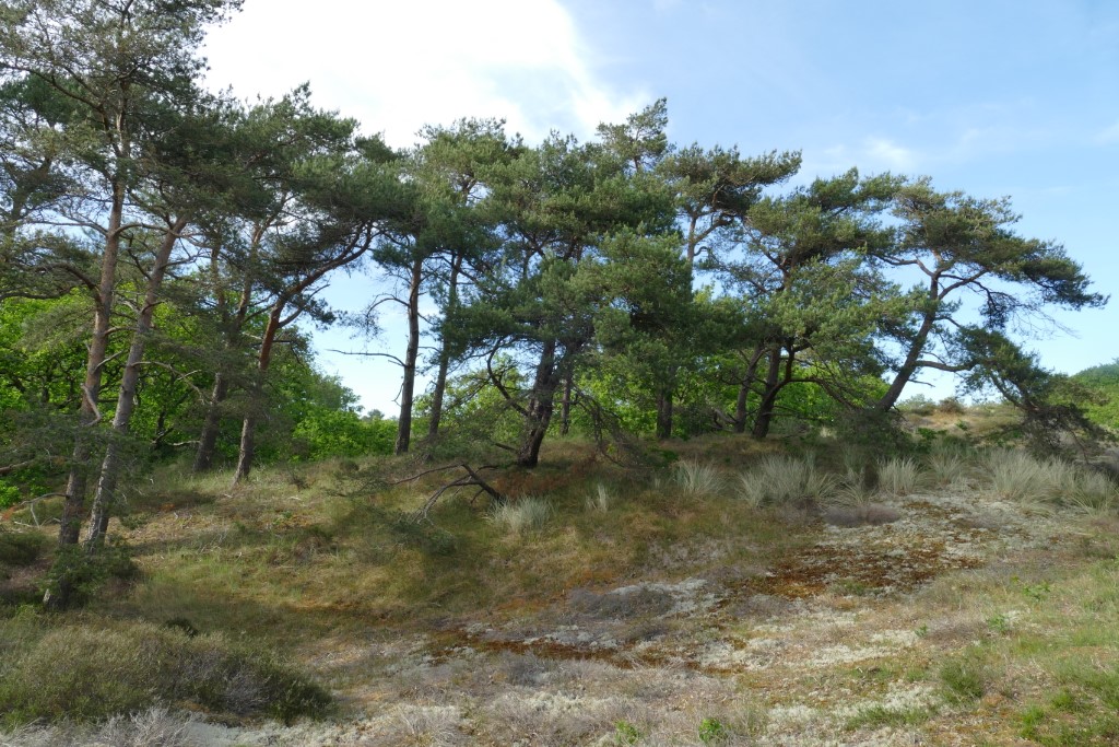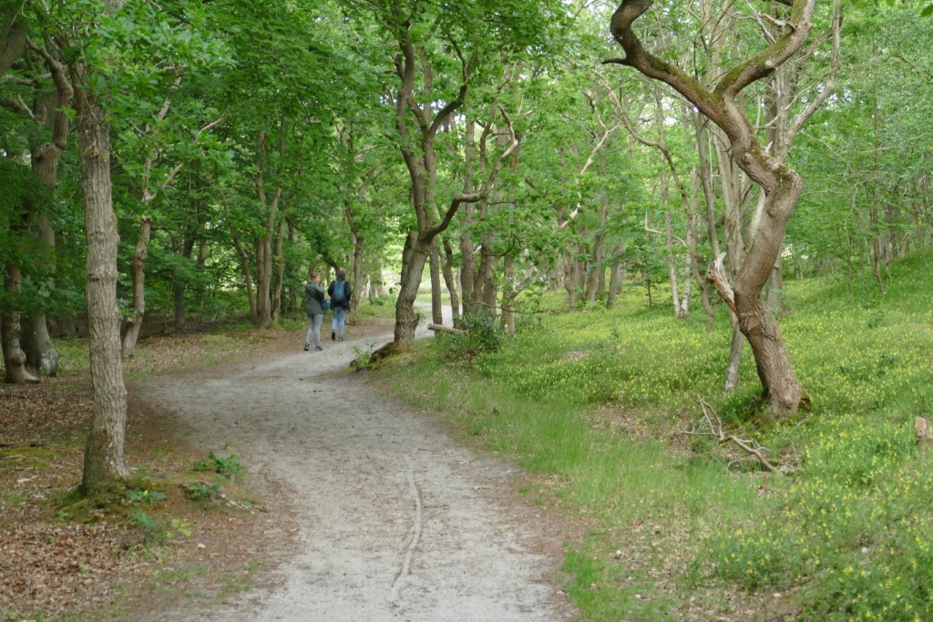 Op ons gemakje wandelen we over mulle paden door het duin. De lucht is klam, we zweten als paarden. Af en toe brengt een zuchtje wind wat verkoeling. Het is de bedoeling om op een plek, waar onze buurman ons op heeft gewezen, naar het Rondbladig wintergroen (Pyrola rotundifolia) te speuren dat hier ergens moet groeien. Overigens lees ik op Wikipedia dat we tegenwoordig Rond wintergroen moeten zeggen… Hoe we het ook moeten noemen – wij vinden het zeer zeldzame plantje niet. Ik zal aan de buurman opnieuw moeten vragen waar we moeten wezen!
