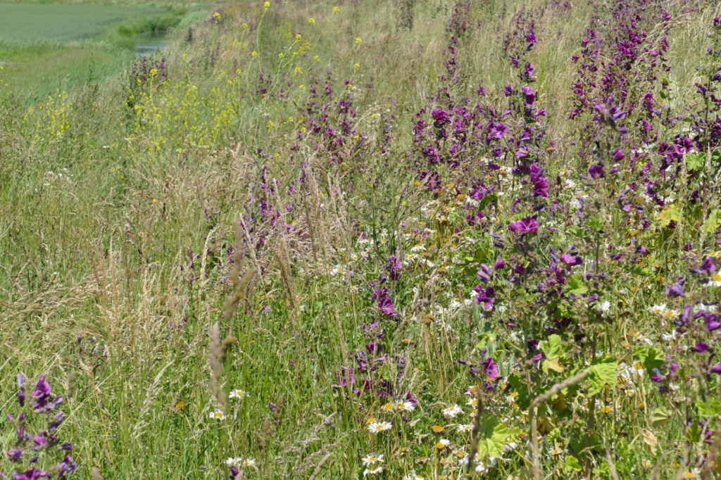 Na een heerlijke en voedzame Cottage Croque stap ik weer op de fiets. De tocht gaat naar Oude Niedorp, door het gehucht Frik (woont hier een onderwijzer?) en dan over achtereenvolgens de Kerkweg, de Groenedijk, de Berkmeerdijk, de Plemdijk en de lange Oostdijk naar Rustenburg dat gelegen is aan de Ringvaart om de Heerhugowaard. Of is dit de Schermer Ringvaart? Of alletwee? De berm van de Oostdijk is ingezaaid met talloze wilde bloemen: een lust voor het oog en vast een insectenparadijs!