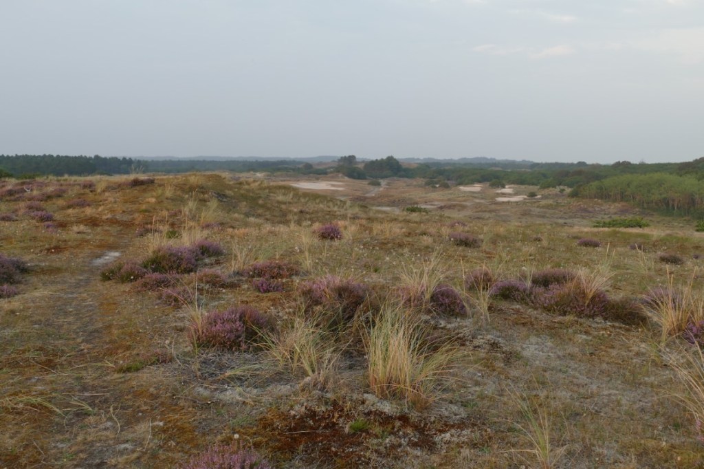 Op de parkeerplaats staan best nog wat auto’s maar in de duinen is het stil… We komen amper andere wandelaars tegen en de trouwe lezer weet intussen dat zulke rust ons zeer bekoort. De heide staat inderdaad in bloei – en hoe. Net als vorig jaar ziet de struikheide er gezond uit en vormen die paars-golvende vlakken een wellust voor het oog! Wat de heide betreft mag de temperatuur wel iets naar beneden gaan en mogen er enkele buien vallen – dan kunnen we wellicht wat langer genieten van al dat fraaie natuurschoon.