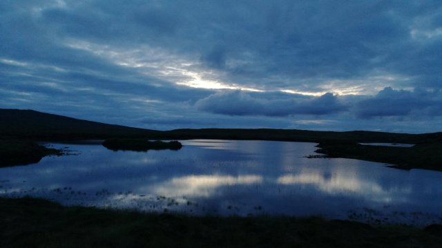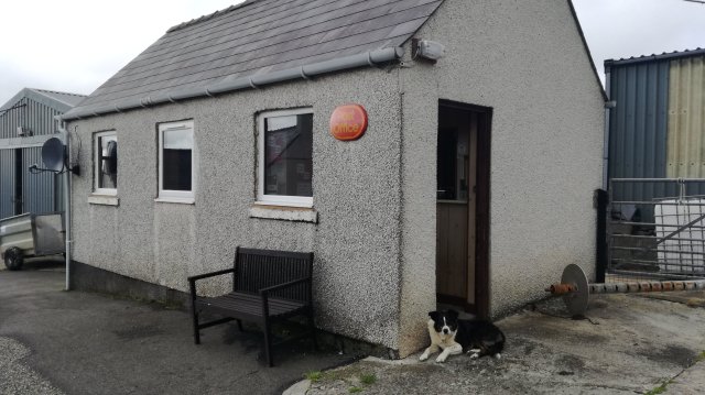 Zoals gezegd is Tolsta Chaolais een verzameling huisjes langs een single track road die tussen een zoetwatermeer en de zee loopt. Bij de noordpunt van het meer splitst de weg, ik neem de linker afslag. Na een paar honderd meter kom ik op het erf van de boerderij annex postkantoor. Een schaapherdershond komt rustig op me af lopen. In het kleine schuurtje zie ik beweging: de oude man komt naar buiten. Ik herken hem nog, hij mij niet. Ja, hij weeft nog steeds en ja, het postkantoor bestaat nog altijd! Helaas kunnen we ons praatje niet afmaken want hij krijgt een lang telefoongesprek.