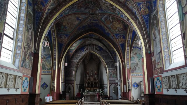 In Eschfeld bezoeken we de Sankt Luzia Pfarrkirche. Pastoor Christoph März versierde de muren en het plafond van de kerk met prachtige muurschilderingen. Van 1906 tot 1921 was hij er druk mee, en het resultaat mag er wezen!