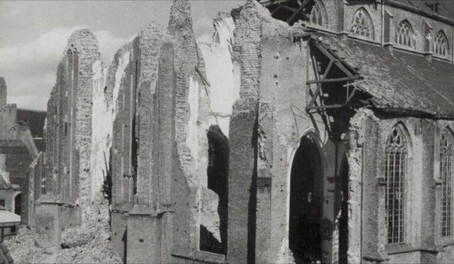 Vanuit mijn bed op het zolderkamertje aan de Kosterstraat te Doesburg keek ik vannacht door het dakraam tegen de hoge toren aan van de Grote of Martinikerk. Op 15 april 1945 werd deze toren door de Duitse bezetter nog opgeblazen, de hele kerk werd toen zwaar beschadigd!