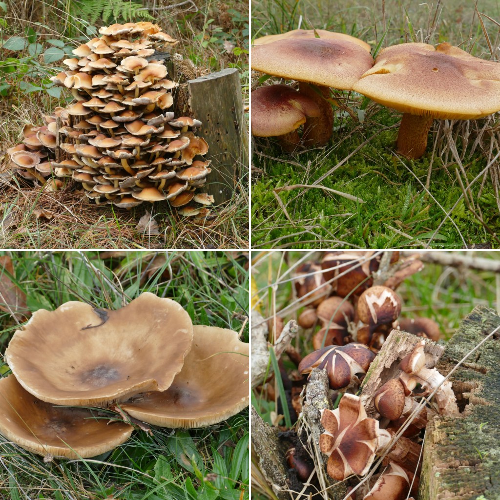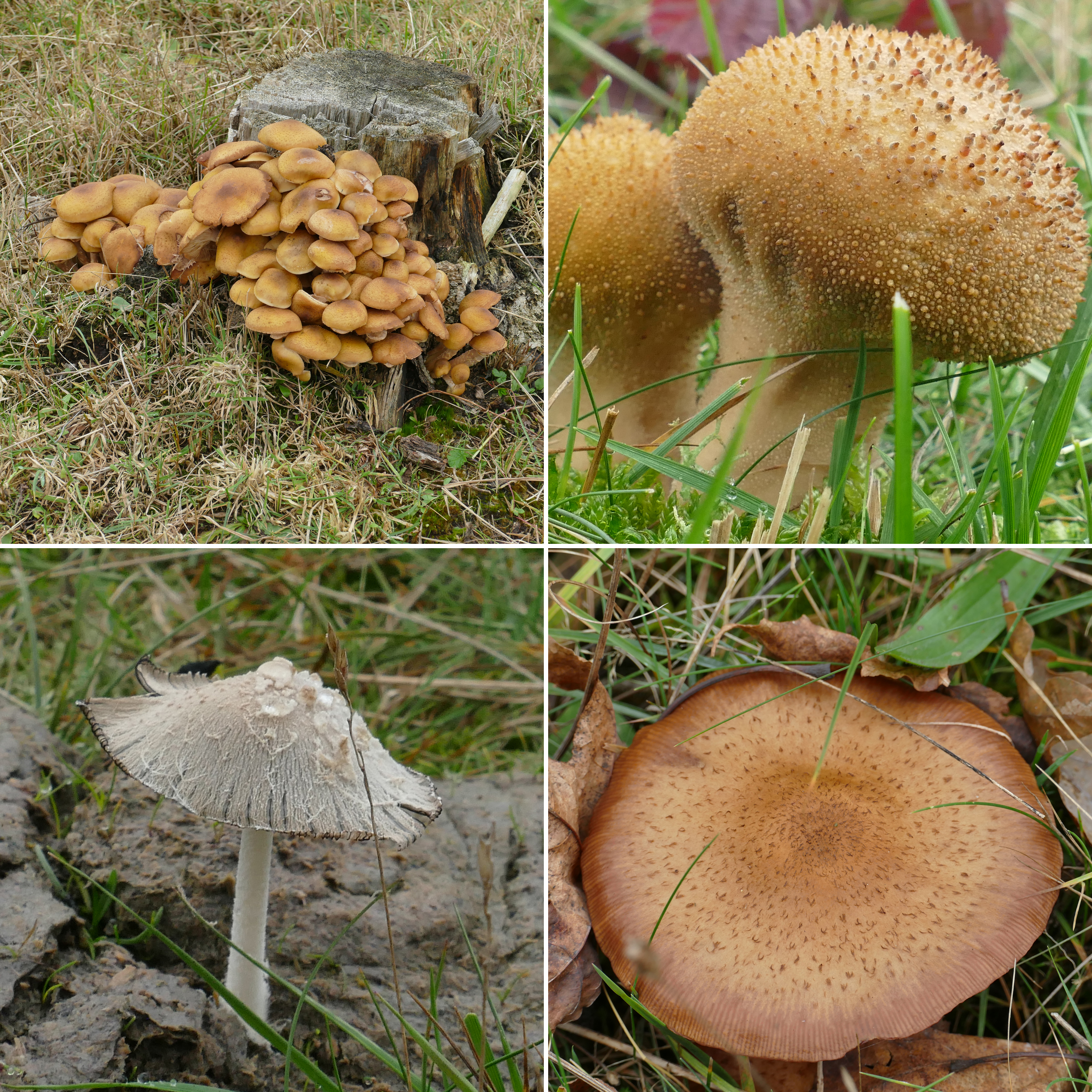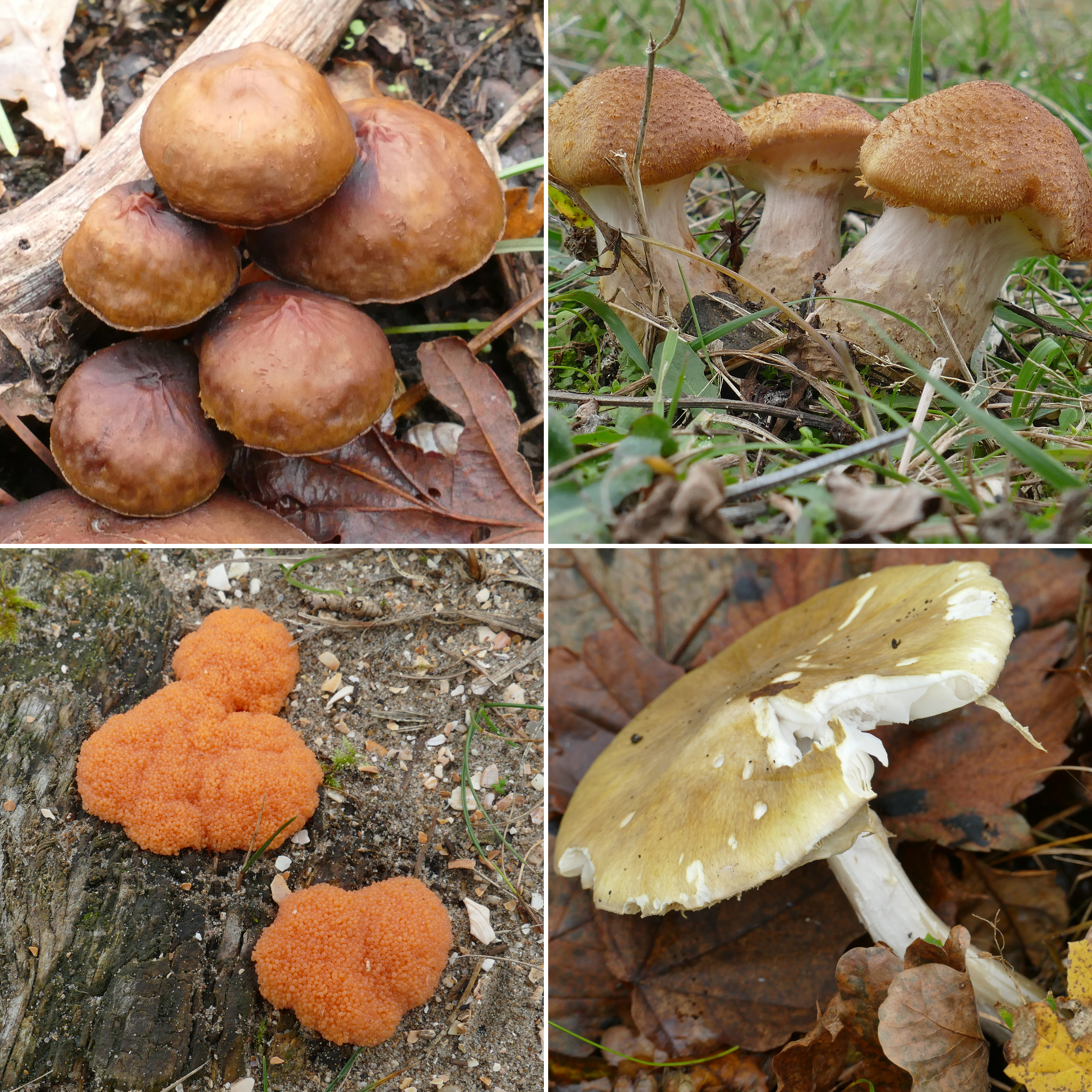 Net voor we de Hogeweg inslaan, zien we links een afgezaagde boomstronk met daarop een grote, witte zwam. Wat we ook proberen, ObsIdentify (app op onze telefoons waarmee je planten, insecten, paddenstoelen enz. kunt determineren) herkent de zwam niet…