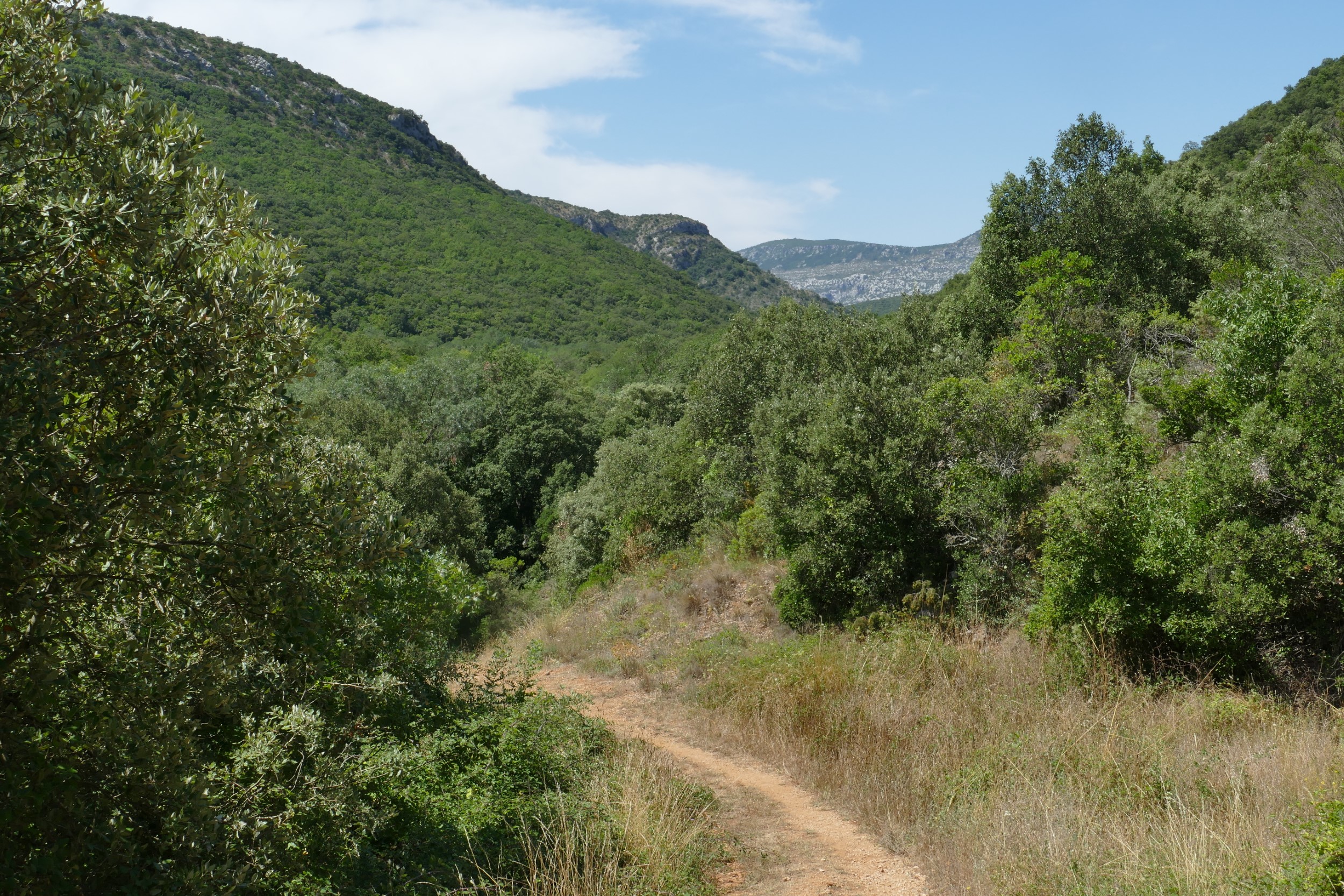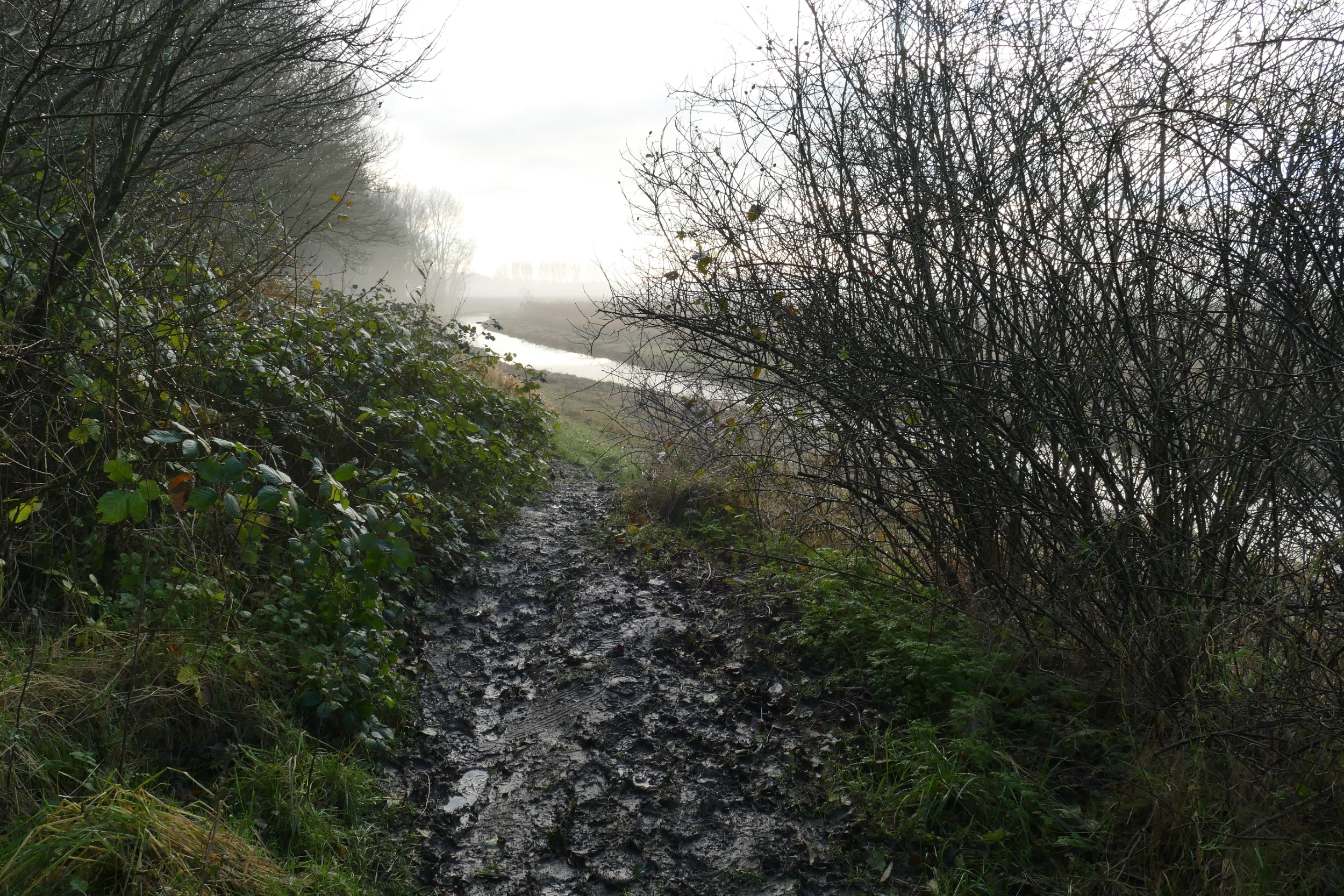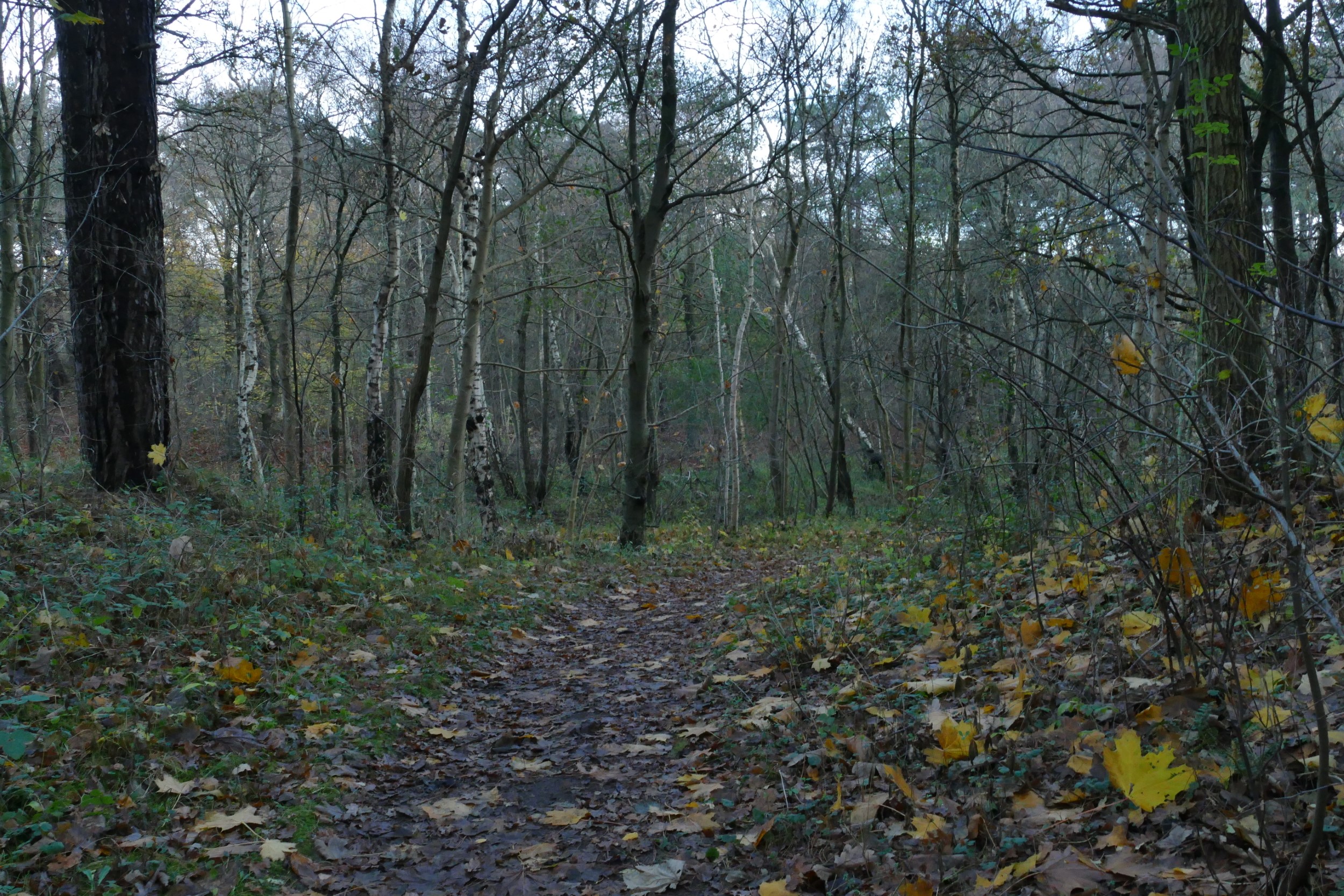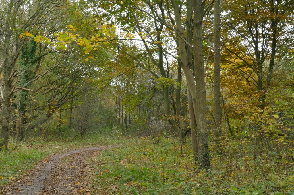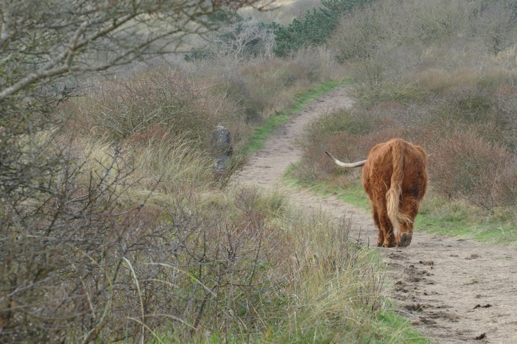 Vrouwlief geeft de moed eerder op dan ik en loopt de Hogeweg in. Een grote stier die uit de bosjes het fietspad op was gelopen, vindt het daar te druk en gaat prompt achter mijn eega aan… Zo komt het dat vrouwlief en ik een tijdje gescheiden lopen, tot meneer Stier zo attent is om het pad te verlaten.