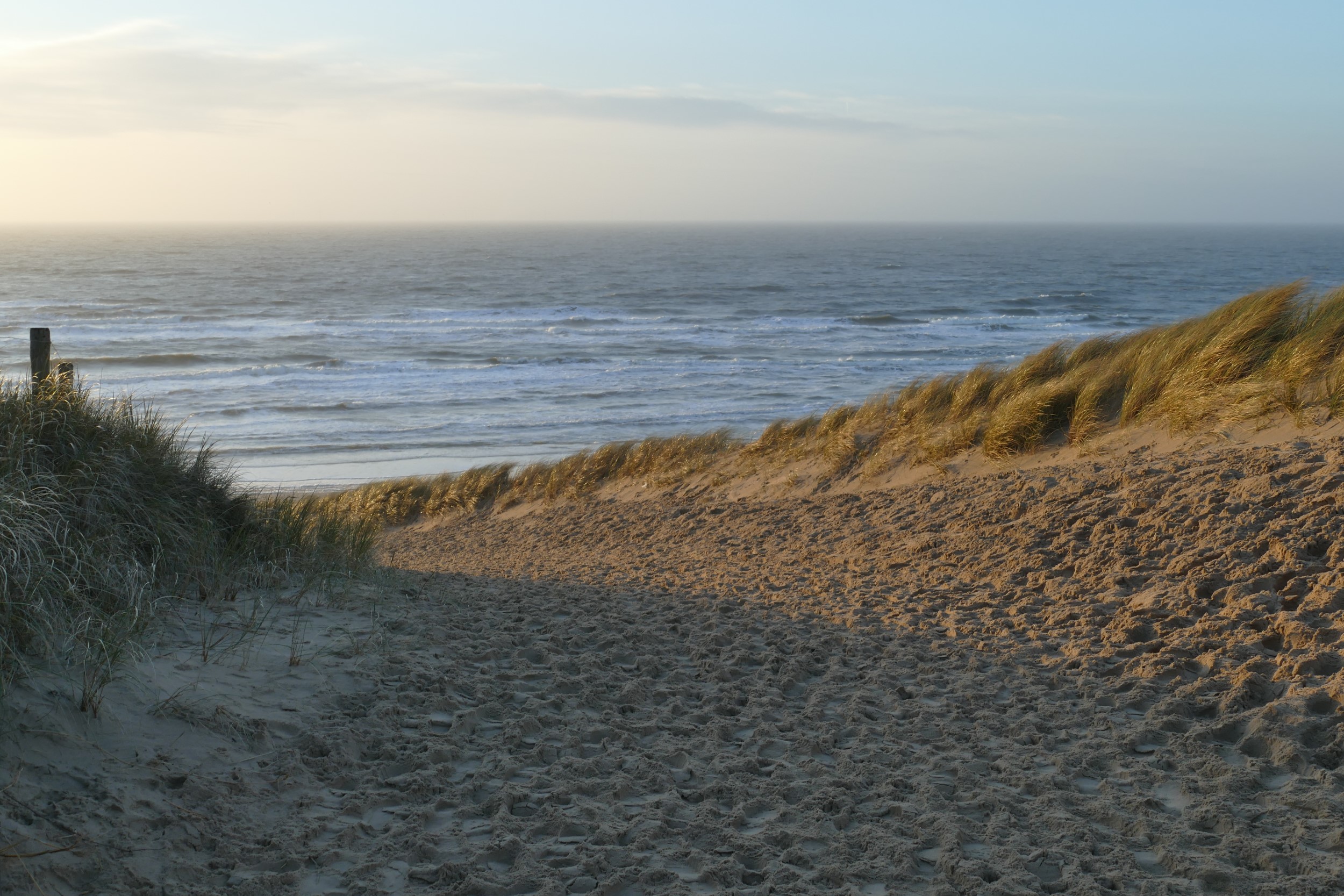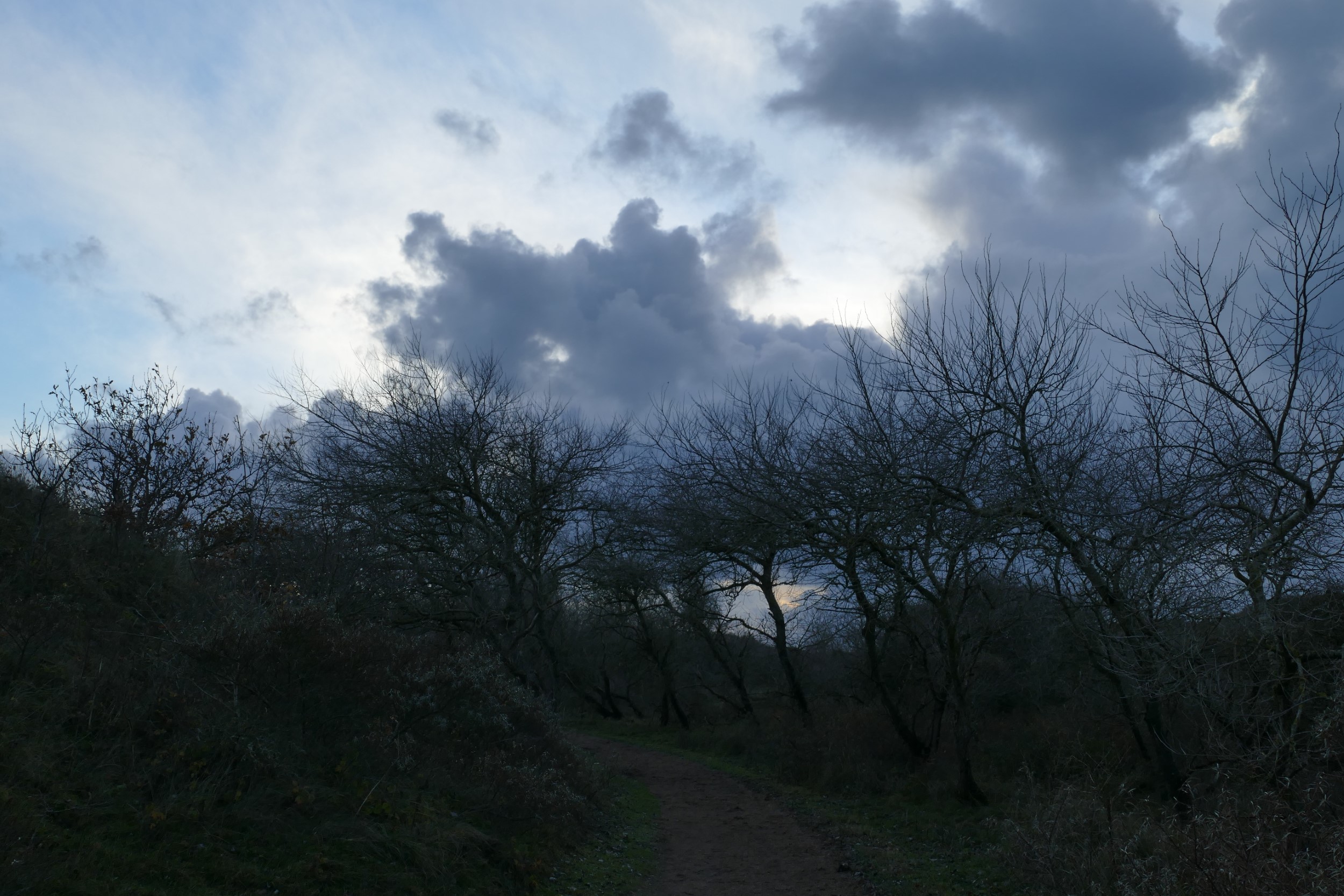 Op de laatste dag van 2021 komt, zoals gehoopt, de zon er nog door. We rijden naar Egmond aan Zee en parkeren aan de zuidkant van het dorp, bij een klaphekje aan het begin van een duinpad. Er staat een strakke west-zuidwestenwind, dus ik rits maar meteen mijn jas dicht! De zon heeft het grootste deel van haar hemelboog al beschreven, over een uur zakt ze in zee. Morgen komt ze op in een nieuw jaar…