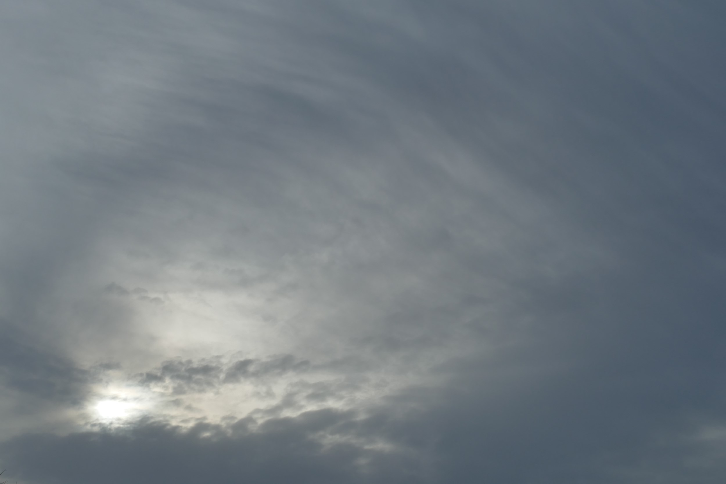 De zon gaat nu definitief schuil achter een dunne grijze sluier… ze priemt er nog wel doorheen. Op een gegeven moment merken we bijzondere wolken op: lange, ijle slierten. Dat hebben we nog nooit gezien…